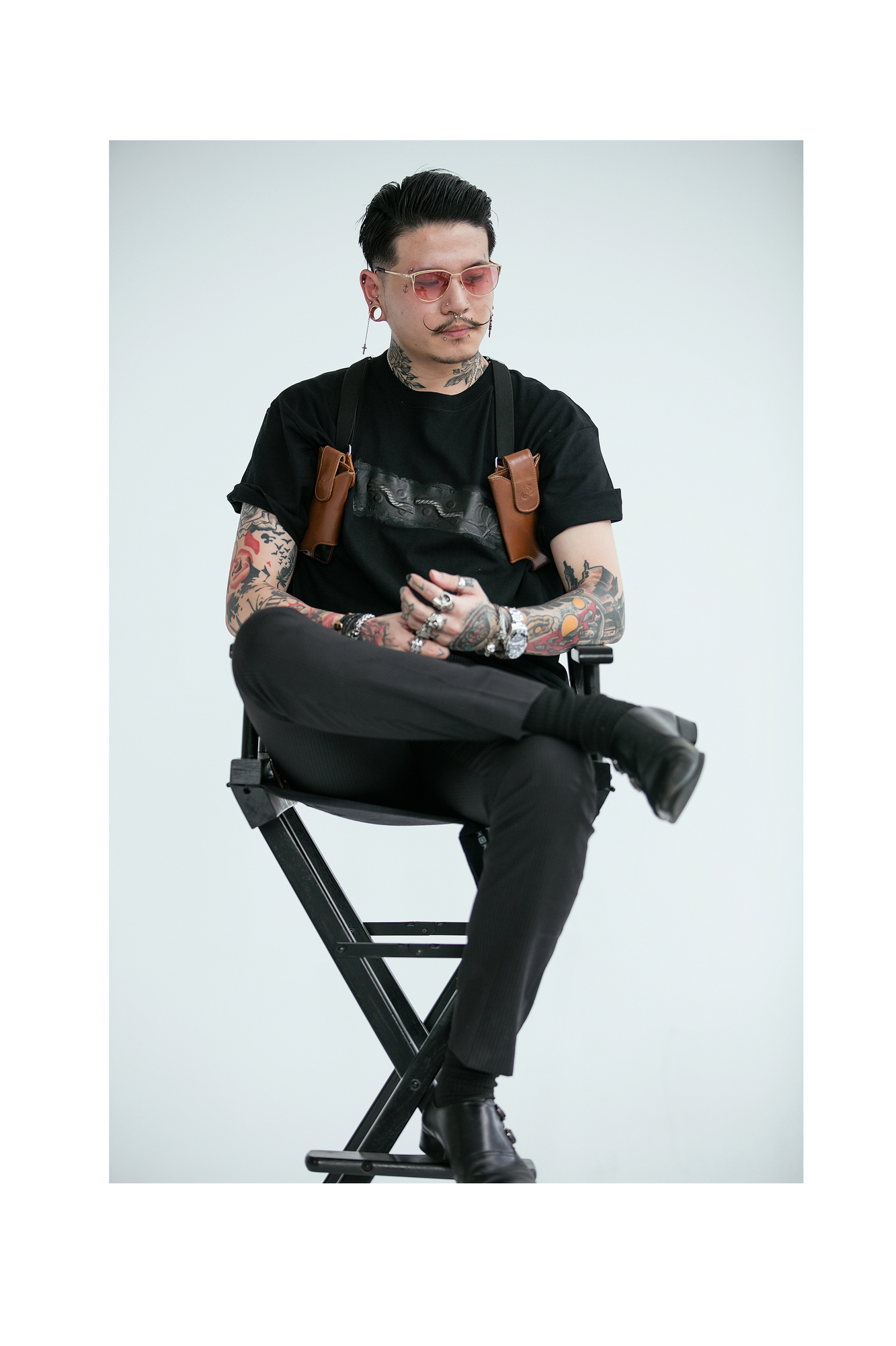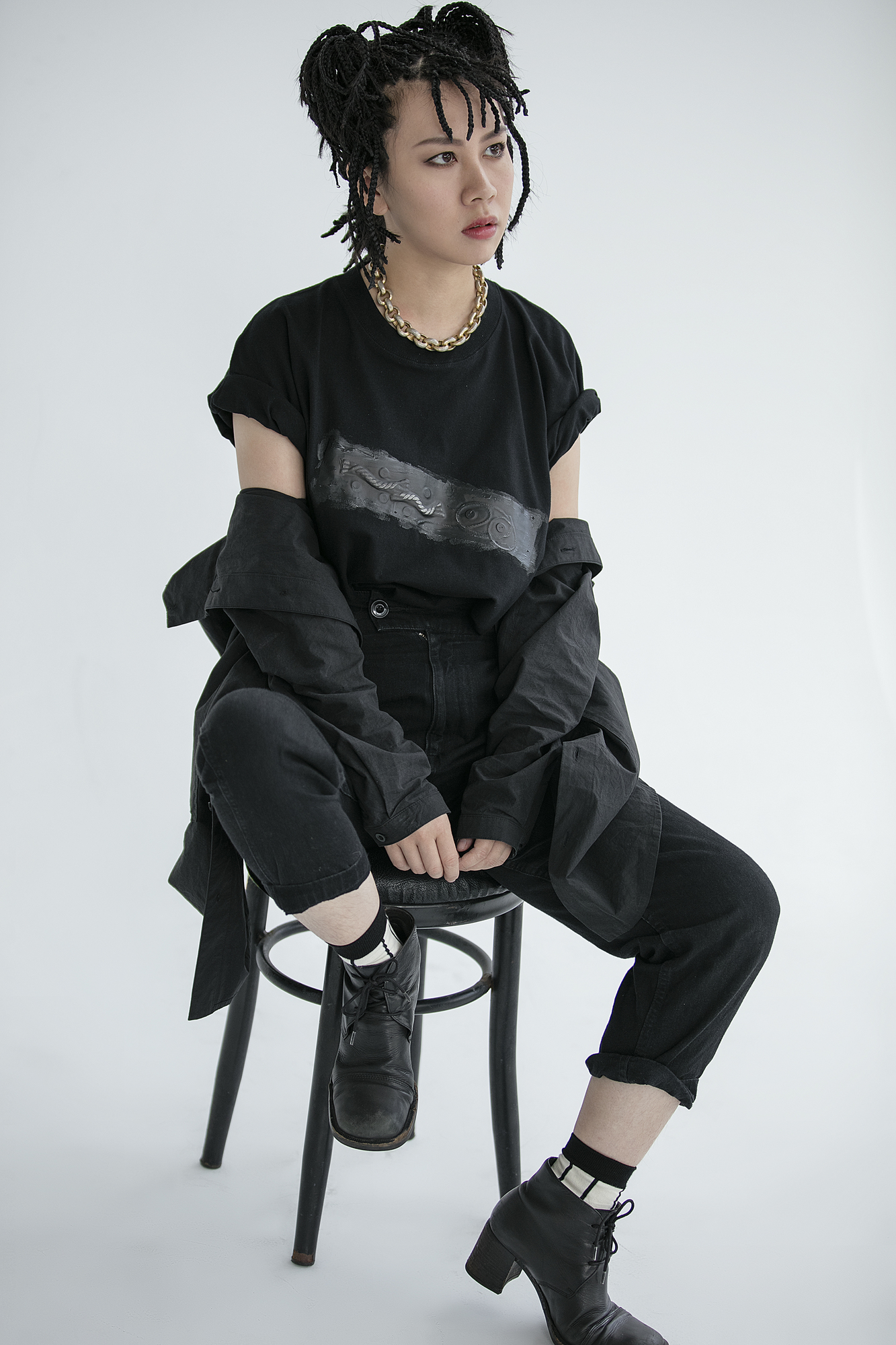 這十位職人都是專業領域中的佼佼者,他們的職業也皆非傳統,有刺青師、畫家、作家、音樂人等。每個人對於自由與框架都有不同的詮釋。那時候我們告訴所有來拍攝的職人們,用自己的方式來穿搭JENN LEE 副牌BLACK T shirt,自由且隨機,沒有任何的規範,完全性的做自己,以平常的模樣來進行BLACK T shirt 的穿搭,像是遊戲一般的自在拍攝。