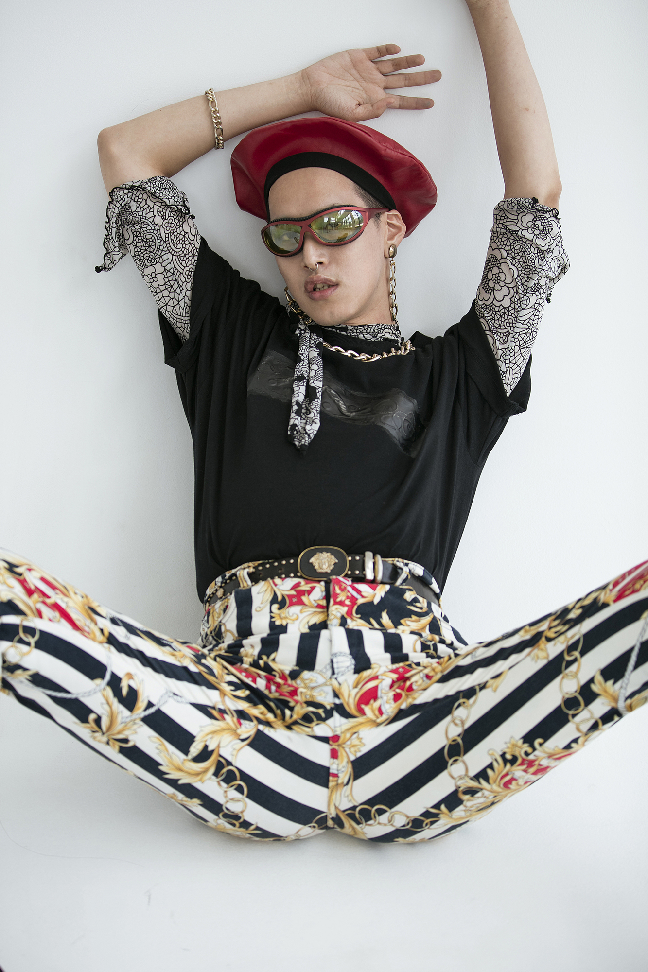 我很喜歡「反差感」與「簡單」,「合身 x 寬鬆」、「正裝 x 街頭」甚至是無性別的穿搭都是我很常有的搭配,今天也是以這樣的概念做搭配,想要強調出造型中反骨、自由的精神,也一直很喜歡像照片中誇張的配件,有時候一個搶眼的飾品就會是很好的點綴,搭配看起來也比較不會單調。